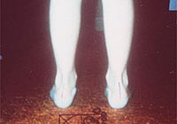 扁平足患者穿上矫正足垫后,双脚直挺,走起路来也不觉疼痛、看似常人。