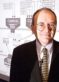 古特曼说,这是因为谷胱甘肽有一种“反馈”抑制作用。如果谷胱甘肽的量太多,它就会回过头来抑制产生谷胱甘肽的酶。而免疫乳浆蛋白浓缩物正可以大量增加谷胱甘肽的量,使它自我抑制癌细胞合成谷胱甘肽。