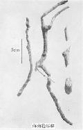 根(直径6mm)的横切面:木栓层为数列木栓细胞。 中柱鞘部位有石细胞带,石细胞多数呈类圆形或圆形,短径21~49μm,长径至84μm,壁厚约17μm;少数呈长圆形,短径17~38μm,长径至100μm,壁厚约3μm。形成层成环。木质部射线细胞木化,有纹孔;导管直径17~119μm,周围有木纤维围绕,间有木薄壁细胞。韧皮薄壁细胞、石细胞及木射线细胞内,含多数直径3.5~7μm的小方晶及棒状结晶,后者长10~30μm。