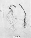 2. 长江以南各省区还常用长叶茜草Rubia lanceolata Hayata (R.cordifolia L.vra.longifolia Hand.-Mazz)作茜草用。其植物与茜草很接近,主要区别在于本种的茎具明显的棱翅,叶具长柄,叶片较长,呈披针形,长2~10cm,基部圆形至近圆形,先端渐尖(见图)。