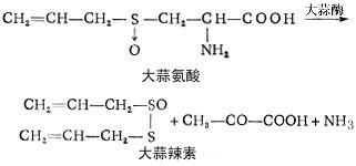大蒜鳞茎中含有大蒜氨酸(Alliin),系一种含硫氨基酸,无挥发性,无臭和辣味。在捣碎大蒜鳞茎时,大蒜氨基酸经细胞中存在的大蒜酶(Allinase)的作用,分解产生大蒜辣素(Allicin)。