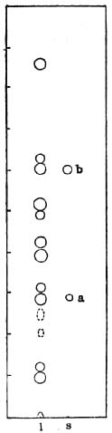薄层层析 样品制备:取样品适量,粉碎后加水蒸馏,提取的挥发油加无水硫酸钠脱水后点样。吸附剂:硅胶G(青岛)-0.8%CMC。展开剂:己烷-乙酸乙酯(85:15)。展距:17cm。显色剂:10%磷钼酸乙醇液,所有斑点呈蓝黑色。