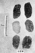 1. 果肉横切面:外果皮为1列略扁平的表皮细胞,外被较厚的角质层。中果皮宽广,为多列薄壁细胞,大小不一,细胞内含深褐色色素块,近内侧有8个维管束环列,近果柄处的横切面常见有石细胞和纤维束。
