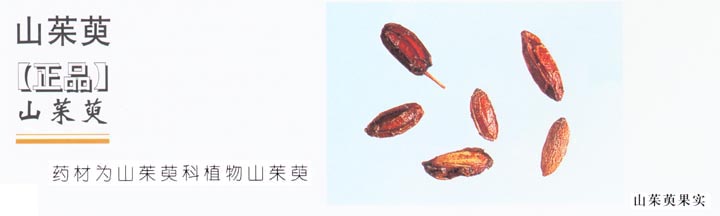 山茱萸始载于《神农本草经》:"山茱萸,味酸平,主心下邪气,寒热温中,逐寒湿痹,去三虫,久服轻身,一名蜀枣,生山谷。"《名医别录》载山茱萸:"生汉中山谷及琅邪冤句,东海承县,九月十月采实,阴干。"《本草纲目》称山茱萸为肉枣。观其附图,并参考前述采收季节、地理分布,可知古代药用的山茱萸与现时商品基本相符。