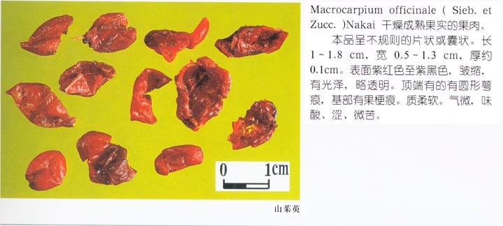 本品为常用中药。商品为山茱萸科植物山茱萸的干燥成熟果肉。