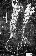 根呈圆柱形,稍弯曲,直径可达4mm,表面黄褐色,有纵皱纹,质硬,断面黄白色。茎丛生,少分枝,长10~30cm,灰绿色或灰棕色,被细柔毛。叶皱缩,展平后呈卵形或卵状披针形,长1~3cm,宽0.5~1cm,侧脉明显,先端短尖,基部圆形或楔形,全缘,灰绿色;叶柄短,有柔毛。总状花序腋生,最上的花序低于茎的顶端;花多皱缩。蒴果圆而扁,长约7mm,具较宽翅,边缘无缘毛,萼片宿存。种子扁卵形,褐色,密被柔毛,顶端有3长裂的假种皮。气微,味微辛苦。