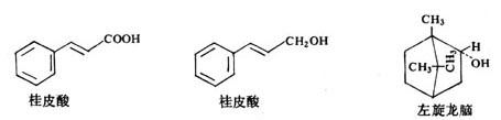 含桂皮醇(cinnamyl alcohol)、桂皮酸酯类、桂皮酸(cinnamic acid)、左旋龙脑等。