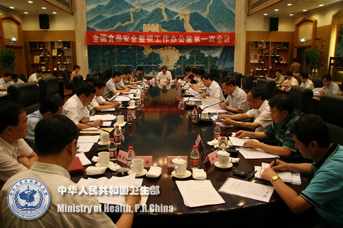 为落实国务院关于集中开展食品安全整顿的部署和要求,加强整顿工作的协调指导,卫生部牵头,农业、工商、质检、食品药品监管等共15个部门组成了全国食品安全整顿工作办公室。今天,办公室召开第一次会议。卫生部部长陈竺,农业部副部长陈晓华、工商总局副局长王东峰、质检总局副局长蒲长城、食品药品监管局副局长边振甲等有关部门领导出席会议。会议由卫生部副部长陈啸宏主持。