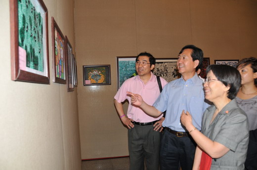 宣传周启动仪式前,陈啸宏副部长和农工党中央汪纪戎副主席共同为“绿色环境健康家园”全国少儿版画作品展揭幕。