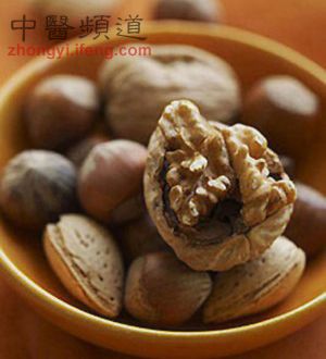 能补肾固精,为滋补强壮食品,肉能润养,皮能敛涩,故肾虚遗精者宜食之。明代医家缪希雍说:“胡桃能入肾固精”。清?黄宫绣亦云:“胡桃涩精固肾。”《普济方》中记载:胡桃治“水弱火强,精自溢出。”这又说明对于心肾不交、阴虚火旺的遗精早泄者亦宜。《御药院方》中介绍:“胡桃一味,勿去黄皮,空腹食之,最能固精。”