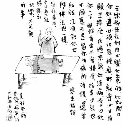 所以苦、乐都来自内心,外在因素也许没那么重要,起决定作用的,是人内心里的作意,也就是人的心态问题。同样的事例很多,比如正常人,无缘无故给送上手术台,让你受一刀,你内心可能痛苦无比;但如果你病得很重,只有做手术才能生存下来,那你可能会感激医生让你上手术台。同样是一刀,不同情况的人,内心的感受不一样,有的是苦,有的是乐。也就是说,苦乐不是外在的“缘”决定,而是我们内心产生出来的。