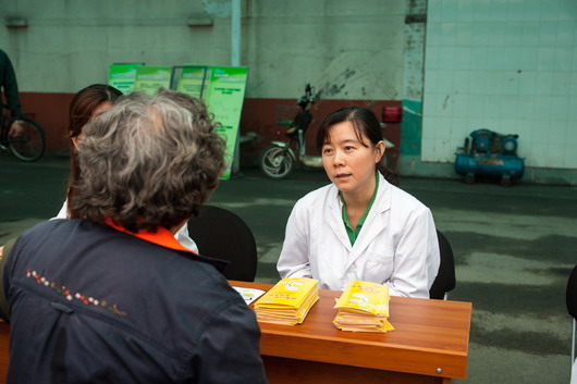 在活动现场为社区居民提供口腔健康咨询和诊疗服务