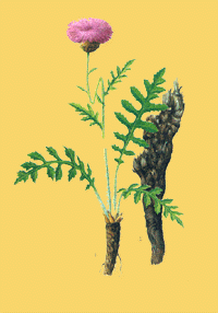 药材性状 本品呈倒圆锥状圆柱形或破裂成块片状,常扭曲,长短不 一,直径l一2.5厘米,深棕色,粗糙,有时外皮剥落,具不规则纵沟纹及 至形的网状裂隙;报头部膨大,有残茎及鳞片状叶基,顶部有灰白色绒毛。 体轻,质脆,易折断,断面不整齐,木部灰黄色,皮部色较深,有裂隙,中 心常腐朽变灰黑色或棕黑色。气特异,味微苦。以条粗、包深揭、不裂者为 佳。1p, http://www.100md.com