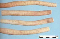 为毛莨科植物毛果芍药Paeonia lactiflora Pall.var.trichocarpa (Bunge)Stern的干燥根。本品多呈长条形,上粗下细,两端不平整,长约10-20cm,直径l.5-2cm。外皮棕色,深浅不等,栓皮未除尽处呈棕褐色斑痕。质坚硬,体重,不易折断,断面粉性足。气微,味微苦甘。