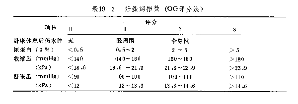 (一)按OG评分法 如评分在6分以上者,为重症患者,则对围产儿之影响大,需加强观察,其评分标准见表19-3。