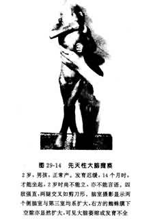 (2) 痉挛性四肢瘫痪(spastic quadriplegia):四肢呈现几乎相等的瘫痪,哭闹时双上肢向背伸展,上肢的运动障碍一般较下肢为重,故与痉挛性两侧瘫痪不同。也常伴有一些假性延髓麻痹的体征。