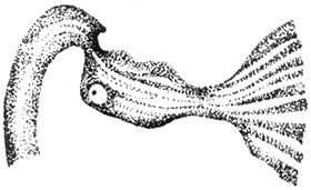 幽门前区的异位胰腺,可引起幽门梗阻症状(梗阻型),上消化道钡餐检查可见幽门前区充盈缺损(图1),表面光滑,界线清楚,基底部较宽、不活动。如在充盈缺损中心见到小钡斑(似溃疡龛影),称为脐样征(图2)。在切位片上,有时可在充盈缺损中有一细管状致密影伸入其中,称为导管征(图3)。脐样征和导管征是异位胰腺的特征性表现。
