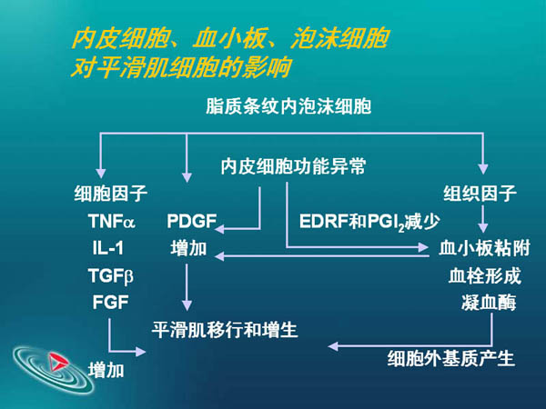 内皮细胞,血小板和泡沫细胞对平滑肌细胞的影响。