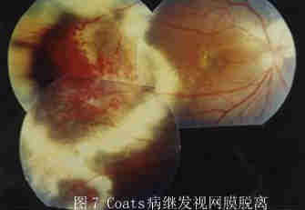1.外层渗出性视网膜病变(Coats病)见图7
