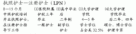 ⑶ 新型专科护士、重症病护士、心血管病护士、康复护士、学校护士、妇女保健护士、家庭护士、老年病护士等。