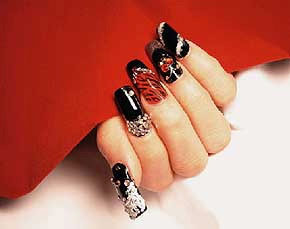 现在国际时尚界最走红的美甲艺术,是一种叫嵌花的创艺指彩(embedded nail art),目前在日本最流行的,则是水晶美甲彩绘。