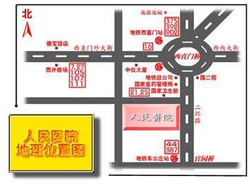 北京大学人民医院位于西直门立交桥西南侧,交通十分便利。乘44、387、21、939、719、743、748、800、702、618等路公交车,西直门站下车即达。另有地铁西直门站、375、902、904、105、111、107等路公交车也可到达。