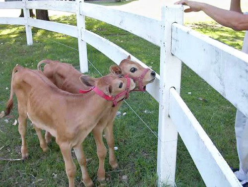 2月5日,两头克隆母牛在阿根廷首都布宜诺斯艾利斯一农场公开亮相 。这两头母牛是今年1月份出生的。据实施克隆技术的科学家称,这两头母牛的牛奶中含有可以用来研制新药品、预防疫病的蛋白质。 新华社/路透