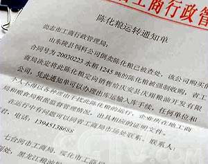 那么整件事情,究竟应该由谁来进门监管呢?其实,为了防止陈化粮非法买卖流入口粮市场,国家规定一方面粮食部门要进行监管,粮贩子苏宝族非法购得的陈化粮出库时,哈尔滨粮食局就应与原陈化粮所述企业所在地的相关部门,即山东陵县工商局和粮食局进行沟通核实。而另一方面,尚志市的工商局按规定也应该在拿到陈化粮出库告知单后,通知山东方面的工商部门。以控制陈化粮的流向。
