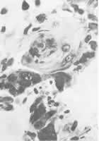 2.该病人生前检测甲胎蛋白正常,这是肝鳞癌本身的特点,抑或是发生在肝胆管癌基础上的原因?我认为可能与后者有关,即肝鳞癌仍保持原肝癌的生物学特性(肝胆管癌血清甲胎蛋白含量正常)。从这个意义上讲,肝鳞癌似不应列为一种独立存在的肝癌,应称原发性肝癌鳞形化生为妥。