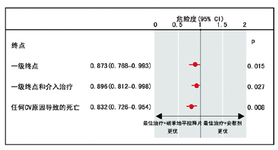 一级安全性终点包括任何原因死亡、心肌梗死和致残性脑卒中