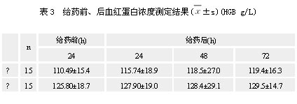 2.3 给药前、后血红蛋白浓度测定结果见表3。