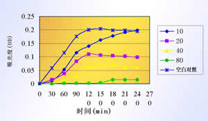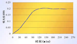 根据LDL氧化产生的共扼二烯键(CD)量随时间变化绘制氧化曲线(图1),在234 nm吸收光密度值的变化形式相对于时间可以分为3个连续的阶段:延迟期、扩增期和降解期。LDL氧化的延迟时间为30分钟。反应达高峰的时间为150分钟,总反应时间为240分钟(图1)。