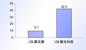 MDA是脂质过氧化反应的主要终产物,LDL氧化过程中生成的MDA采用TBARS方法进行测定。LDL氧化后,其MDA含量明显增加(图2)。