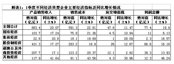 附表1:1季度不同经济类型企业主要经济指标及同比增长情况