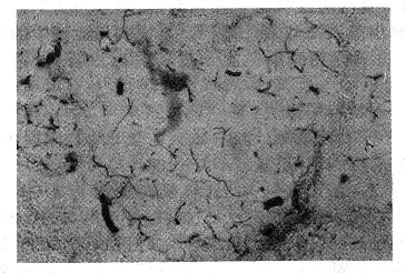 (二)血管染色方法:取鼠背皮瓣标本,大小1cm×0.5cm。分别用:(1)10%缓冲甲醛(PH7.2-7.4),(2)10%甲醛(PH<5),(3)纯丙酮,(4)95%酒精。在4℃固定6-12小时。冰冻切片30-50um,将切片用联苯胺液(0.05mol/L PH7.6 TBS 100ml,DAB50mg,30%H2 O2 30ul)显示血管5-10分钟,镜下控制,自来水终止显色。中性红复染后,常规脱水,透明,封片。