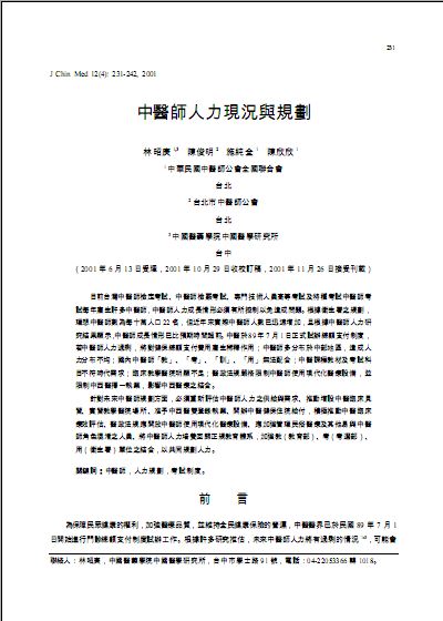 Current Status and Proposed Manpower Planning for the Practice of Traditional Chinese Medicing in Taiwan, R.O.C.