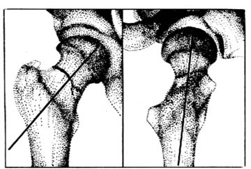 3.如无手术禁忌,应尽力在入院后1周内施行手术。术前在持续牵引下在床边摄股骨颈正、侧位X线片,观察骨折复位情况。
