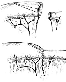 | 图2 先天性肠闭锁肠造瘘肠端侧吻合术 |