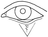 1.在与睑缘呈垂直方向走行的瘢痕上,顺其主要的牵引力线作皮肤切口。切口的两端各作一个方向相反的分叉切口,其长度达垂直瘢痕中央的垂直线上。切口的夹角应根据需要伸展多长的皮肤来决定。夹角越小,组织移动小,皮肤伸展程度小,夹角越大,组织移动大,皮肤伸展程度大。通常以45°~60°为最好。夹角为45°,皮肢延长率为切口长度的1.47倍。夹角为60°,则皮肤延长率加大为1.73倍。夹角小于30°和夹角大于90°没有临床治疗意义。前者因皮瓣过窄起不了缓解瘢痕收缩的作用,后者不容易交错互换两个皮瓣的位置(图3)。