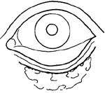 3.重度瘢痕性眼睑外翻,作Weeks法睑缘缝合,但术后经常发生裂开,可作李玉纯改良法或作瓣状切口的睑缘缝合(图13、14)。