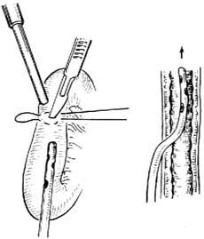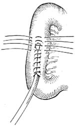 | ⑴探查十二指肠悬韧带,决定造瘘部位 |