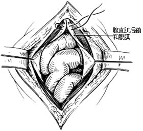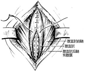 | 图1 经腹直肌切口疝修复术 |