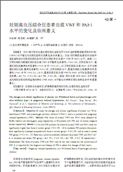 妊娠高血压综合征患者血浆VWF和PAI_1水平的变化及临床意义.PDF