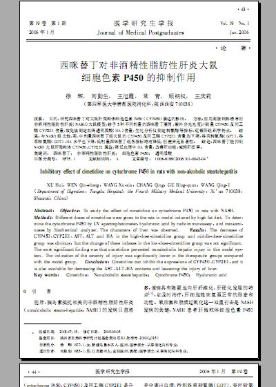 西咪替丁对非酒精性脂肪性肝炎大鼠细胞色素P450的抑制作用.pdf