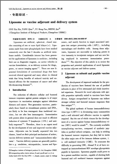 脂质体作为疫苗佐剂和给药系统的应用.pdf