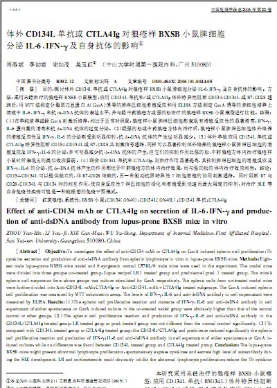 体外CD134L单抗或CTLA4Ig对狼疮样BXSB小鼠脾细胞分泌IL-6IFN-γ及自身抗体的影响