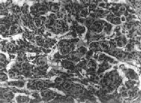 (4)血管母细胞型:肿瘤细胞丰富,胞浆模糊,胞核椭圆,多排列在毛细血管旁,并有较多的网状纤维。