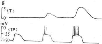 下面的曲线为细胞内电极记录的基本电节律,