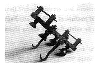 融椎器采用医用钛钢合金制成,该材料组织相容性好,对人体无不良反应。由两根立柱相连,呈大螺纹空心圆柱体状,分为大、中、小三种型号,分别为16mm(外直径)×28(长度)mm、16mm×26mm、15mm×24mm。螺纹的横断面呈五边型,融椎器高度为2.5mm,底宽1.6mm,螺纹的斜度为30°,丝距为3mm,螺纹的间隙占整个体表面积的70%,能使椎间关节界面骨与植入融椎器内骨组织紧密接触以利骨性愈合。融椎器后端有一2mm宽的边缘,内有深1.5mm,宽1.0mm的凹槽。以备后盖关闭用(图1)。经力学测定最大抗压力为9000N(约900kg),超过成人行走时腰部承受重量的10倍,经过100万次90kg负载疲劳试验无裂纹及其它损害。通过国家规定机构严格力学测定和对材料化学成份、金相显微组织要求均合乎GB13810外科植入物TC4钛合金加工材料和GB5168两相钛合金高低倍组织检验方法的要求。配套器械包括椎体复位器、环钻、丝锥、旋入器、后窗关闭器、后窗调整器及后盖。(图2)