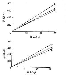 力以kg为单位,肌电以μV为单位,描绘肌电/